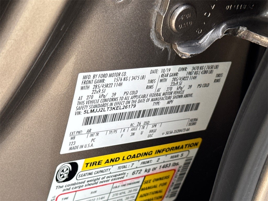 Bluetooth®..., Nationwide Shipping Available, 14 Speakers, 2nd Row Heated Dual Captain's Chairs w/PowerFold, 3.73 Axle Ratio, 30-Way Perfect Position Seating w/Active Motion, 3rd row seats: split-bench, 4-Wheel Disc Brakes, ABS brakes, Adaptive suspension, Adjustable pedals, Air Conditioning, AM/FM radio: SiriusXM, AppLink/Apple CarPlay and Android Auto, Audio memory, Auto High-beam Headlights, Auto tilt-away steering wheel, Auto-dimming door mirrors, Auto-dimming Rear-View mirror, Auto-leveling suspension, Automatic temperature control, Bodyside moldings, Brake assist, Bumpers: body-color, Cargo Package, Chrome Roof Rack w/Crossbars, Compass, Delay-off headlights, Driver door bin, Driver vanity mirror, Driver's Seat Mounted Armrest, Dual front impact airbags, Dual front side impact airbags, Electronic Stability Control, Emergency communication system: 911 Assist, Equipment Group 300A Reserve, Exterior Parking Camera Rear, Four wheel independent suspension, Front anti-roll bar, Front Bucket Seats, Front dual zone A/C, Front fog lights, Front reading lights, Fully automatic headlights, Garage door transmitter: HomeLink, Genuine wood dashboard insert, Genuine wood door panel insert, GVWR: 7,625 lbs Payload Package, Heads-Up Display, Heated door mirrors, Heated front seats, Heated rear seats, Heated steering wheel, HVAC memory, Illuminated entry, Leather steering wheel, Lincoln Play, Low tire pressure warning, Memory seat, Navigation System, Occupant sensing airbag, Outside temperature display, Overhead airbag, Overhead console, Panic alarm, Passenger door bin, Passenger seat mounted armrest, Passenger vanity mirror, Pedal memory, Power adjustable rear head restraints, Power door mirrors, Power driver seat, Power Liftgate, Power moonroof: Panoramic Vista Roof, Power passenger seat, Power steering, Power windows, Premium Lthr Htd/Ventilated Low-Back Bucket Seats, Radio data system, Radio: Revel AM/FM/HD/MP3 Audio System, Rain sensing wipers, Rear air conditioning, Rear anti-roll bar, Rear audio controls, Rear reading lights, Rear window defroster, Rear window wiper, Reclining 3rd row seat, Remote keyless entry, Roof rack: rails only, Security system, SiriusXM Radio, Speed control, Speed-sensing steering, Speed-Sensitive Wipers, Split folding rear seat, Spoiler, Steering wheel memory, Steering wheel mounted audio controls, SYNC 3 Communications & Entertainment System, Tachometer, Telescoping steering wheel, Tilt steering wheel, Traction control, Trip computer, Turn signal indicator mirrors, Variably intermittent wipers, Ventilated front seats, Wheels: 22 6-Spoke Ultra-Bright Machined-Aluminum.
